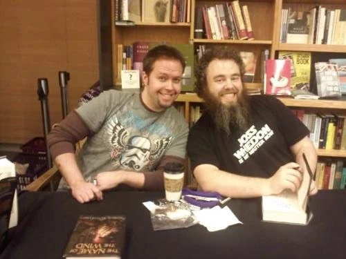 Taylor and Rothfuss at a signing at the University of Washington Bookstore